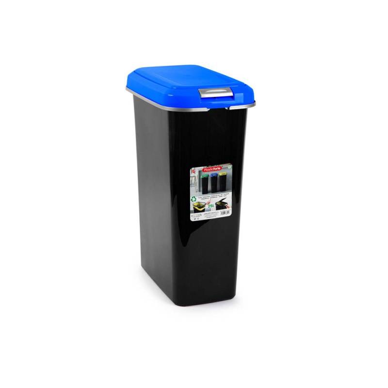 Optimiza la gestión de residuos en tu hogar, oficina o espacio reducido con este contenedor para reciclaje de 25 litros, diseñado para facilitar la separación de materiales plásticos. Fabricado en España con plástico reciclable, combina un diseño compacto y funcional con una tapa azul que identifica claramente su uso para residuos plásticos, promoviendo prácticas sostenibles y ordenadas.