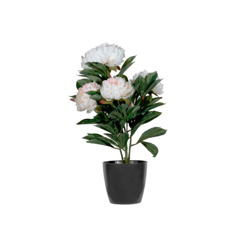 La FLOR ARTIFICIAL PAPERFLOW PEONIA BLANCA 55 CM es una elegante pieza decorativa que reproduce con gran realismo la belleza de una peonía blanca. Fabricada con tejidos y materiales sintéticos de alta calidad, ofrece una opción duradera y libre de mantenimiento para embellecer cualquier espacio, ya sea en interiores o en zonas exteriores protegidas.