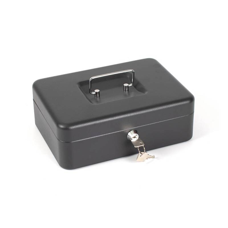 Caja caudales Q-Connect 10" 250x180x90 mm color negro con bandeja portamonedas.