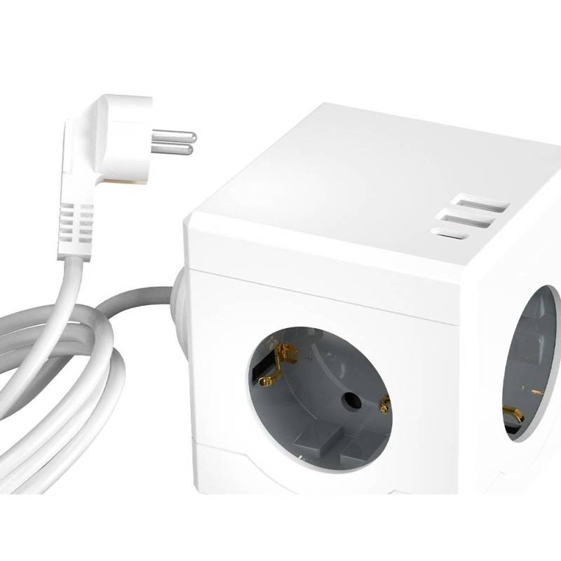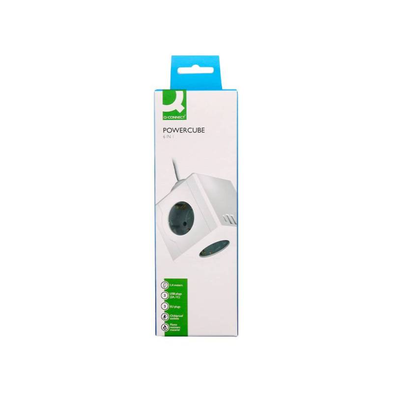 REGLETA MARCA Q-CONNECT DE CUBO ENCHUFE MULTIPLE POWER CUBE 6 EN 1 CABLE DE 1,4MT 3 TOMAS DE CORRIENTE+2 USB+1 USB C