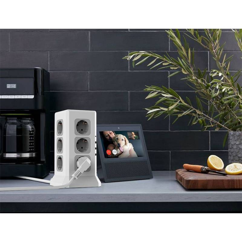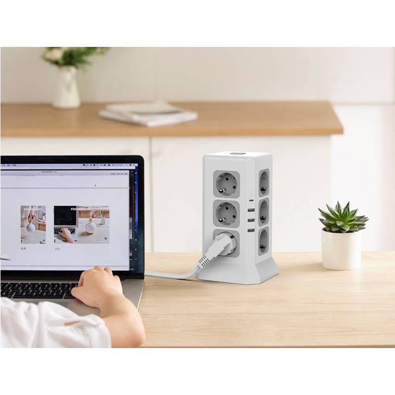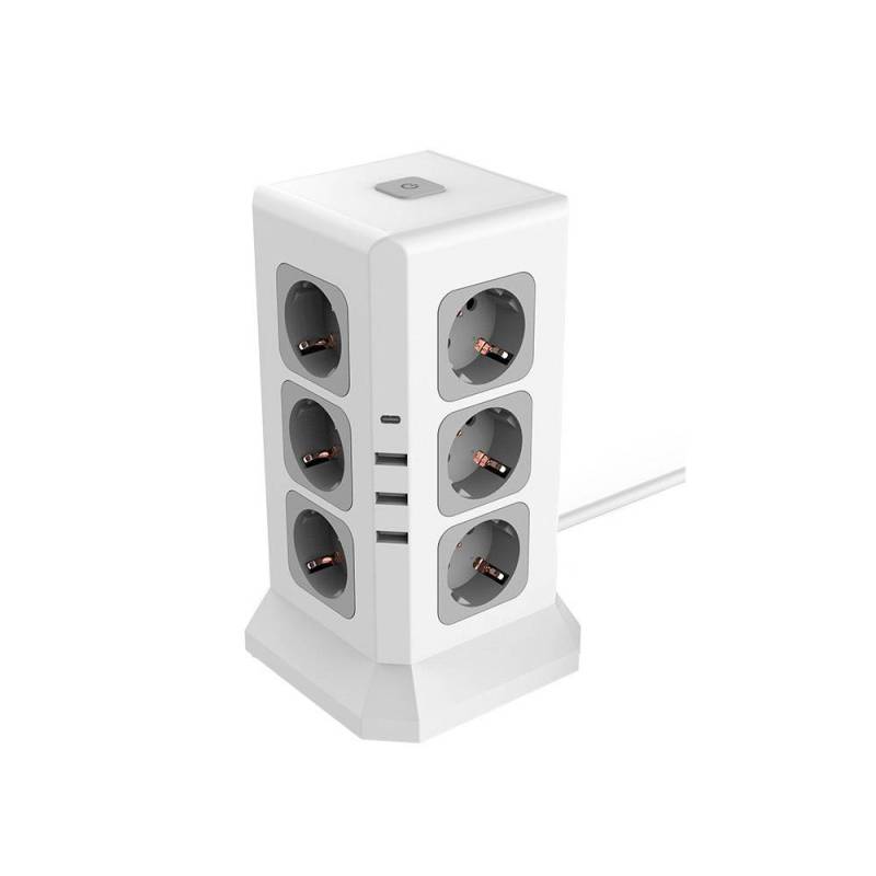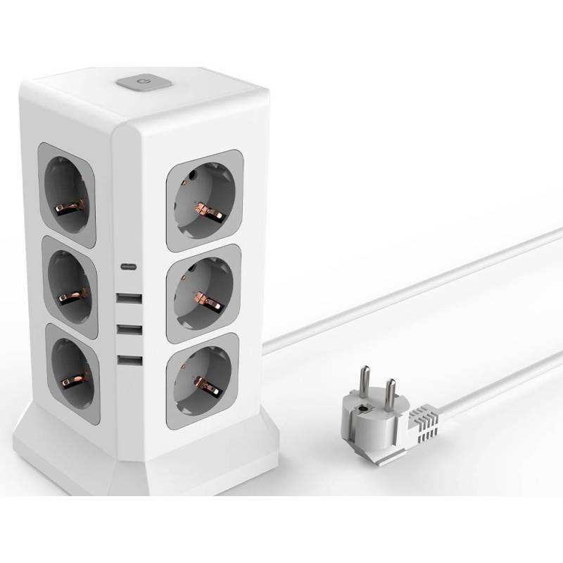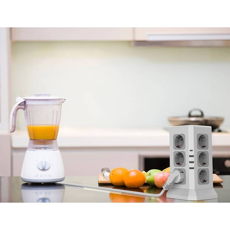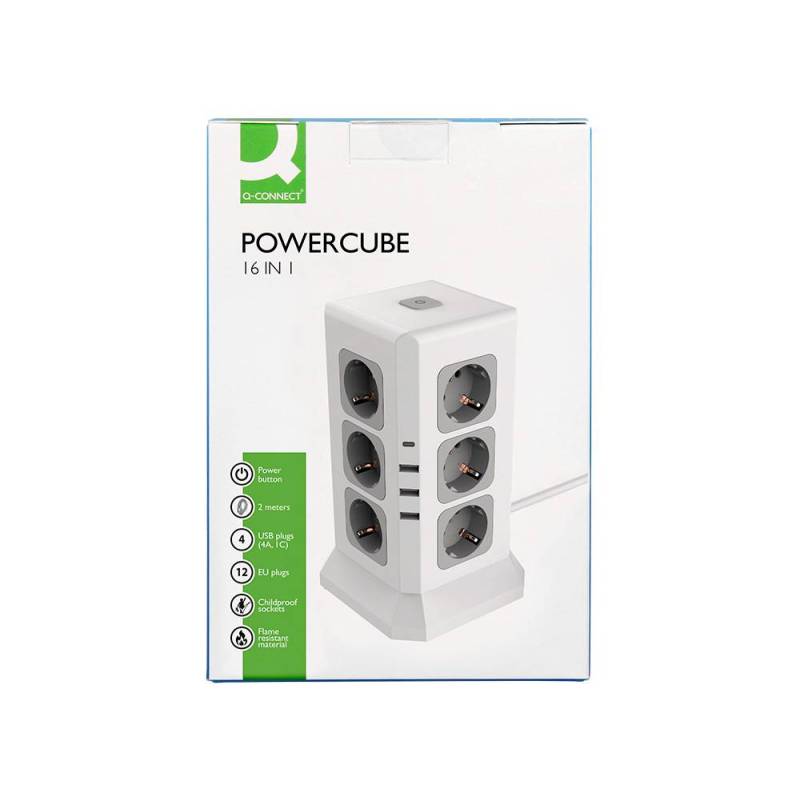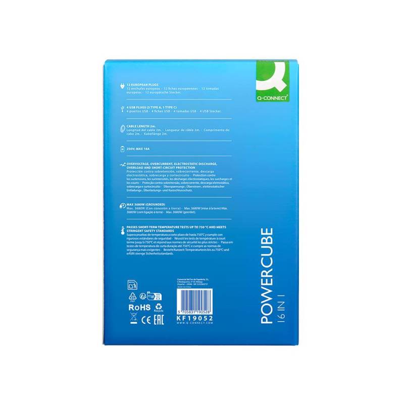 REGLETA MARCA Q-CONNECT ENCHUFE MULTIPLE 16 EN 1 CABLE 2 MT 12 TOMAS DE CORRIENTE+3 USB+1 USB TIPO C 120X120X210MM