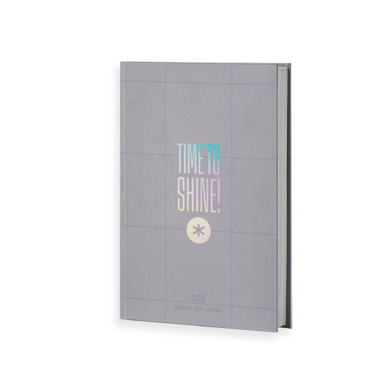 AGENDA ENCUADERNADA MARCA ANTARTIK TIME TO SHINE A5+ 2026 DÍA PÁGINA GRIS PAPEL 80G FSC