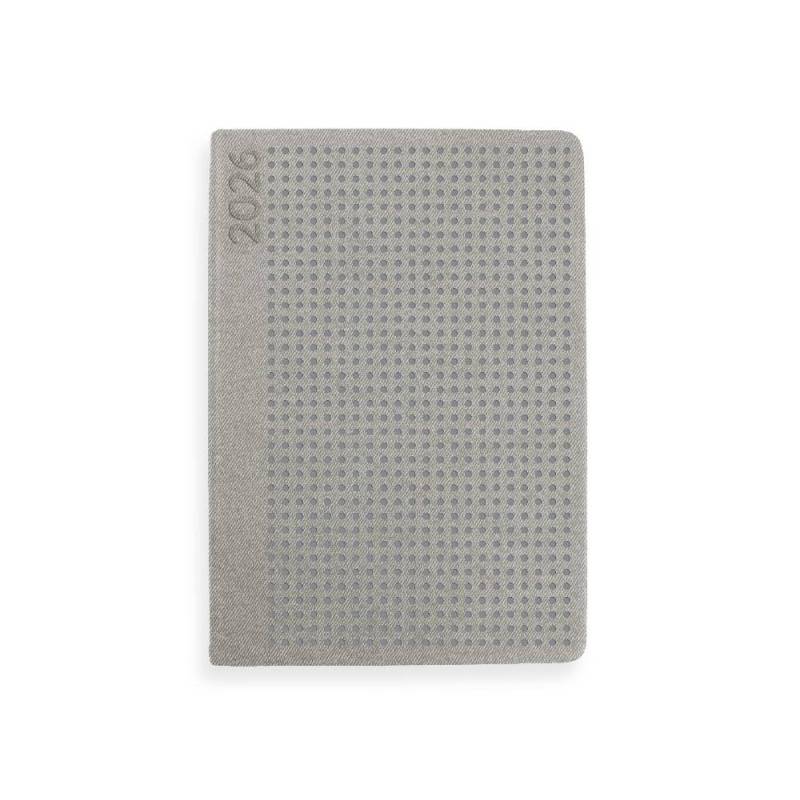 Organiza tu año 2026 con esta agenda encuadernada de formato A5, diseñada para ofrecer una planificación diaria detallada y eficiente. Su diseño sobrio en color gris, combinado con una cubierta rígida en simil piel con relieve, aporta un toque elegante y profesional, ideal para ambientes personales y laborales. Gracias a su papel de 70 g/m² certificado FSC, garantiza una escritura cómoda y respetuosa con el medio ambiente.