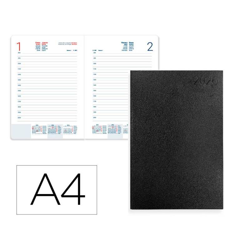 AGENDA ENCUADERNADA MARCA LIDERPAPEL CORFU A4 2026 DIA PAGINA NEGRO PAPEL 60 GR