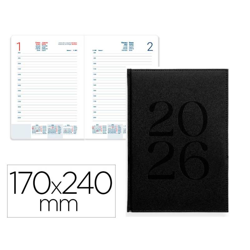 AGENDA ENCUADERNADA MARCA LIDERPAPEL CRETA 170X240 MM 2026 DIA PAGINA NEGRO PAPEL 70 GR