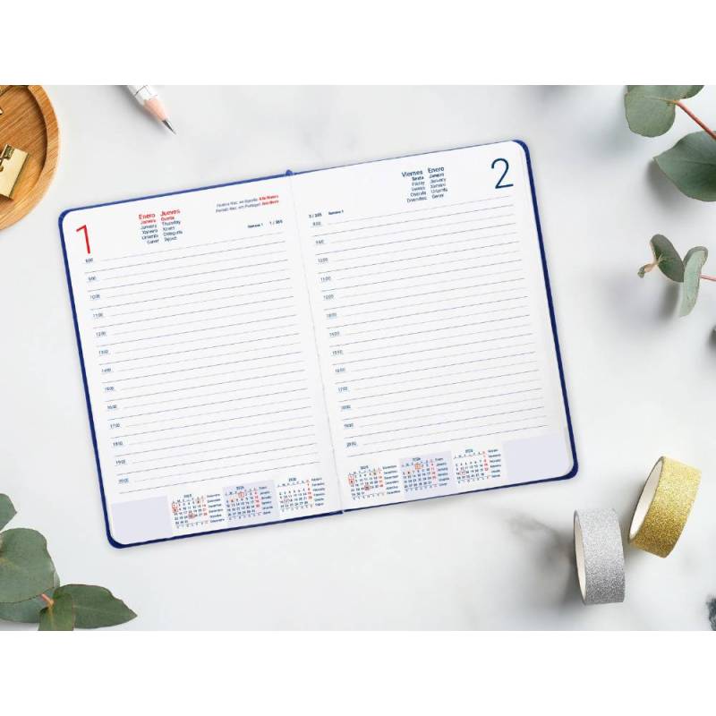 Esta agenda Mykonos es una herramienta completa para quienes valoran la organización diaria, combinando funcionalidad, estética sencilla y un compromiso con la sostenibilidad ambiental. Su tamaño y encuadernación la convierten en una opción versátil para uso en oficina, estudio o planificación personal.
