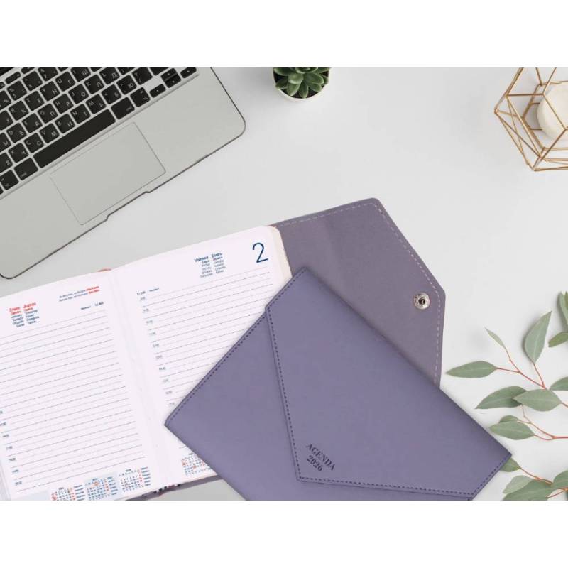 Organiza tu año 2026 con esta agenda encuadernada en formato A5, diseñada para ofrecer una planificación diaria detallada y un estilo elegante. Su tapa rígida de simil piel en color morado aporta un toque sofisticado, ideal para quienes valoran la funcionalidad junto con la estética. Disfruta de un producto elaborado con papel de alta calidad, certificado por FSC, que garantiza un compromiso responsable con el medio ambiente.
