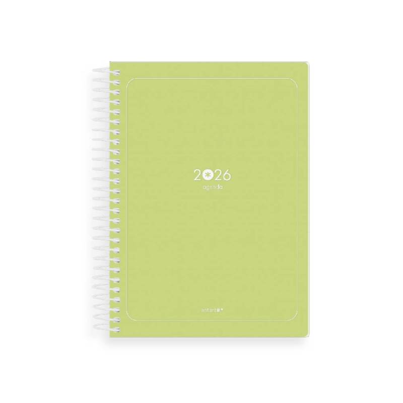 AGENDA ESPIRAL MARCA ANTARTIK ESSENTIALS A5+ 2026 DÍA PÁGINA VERDE PAPEL 80G FSC