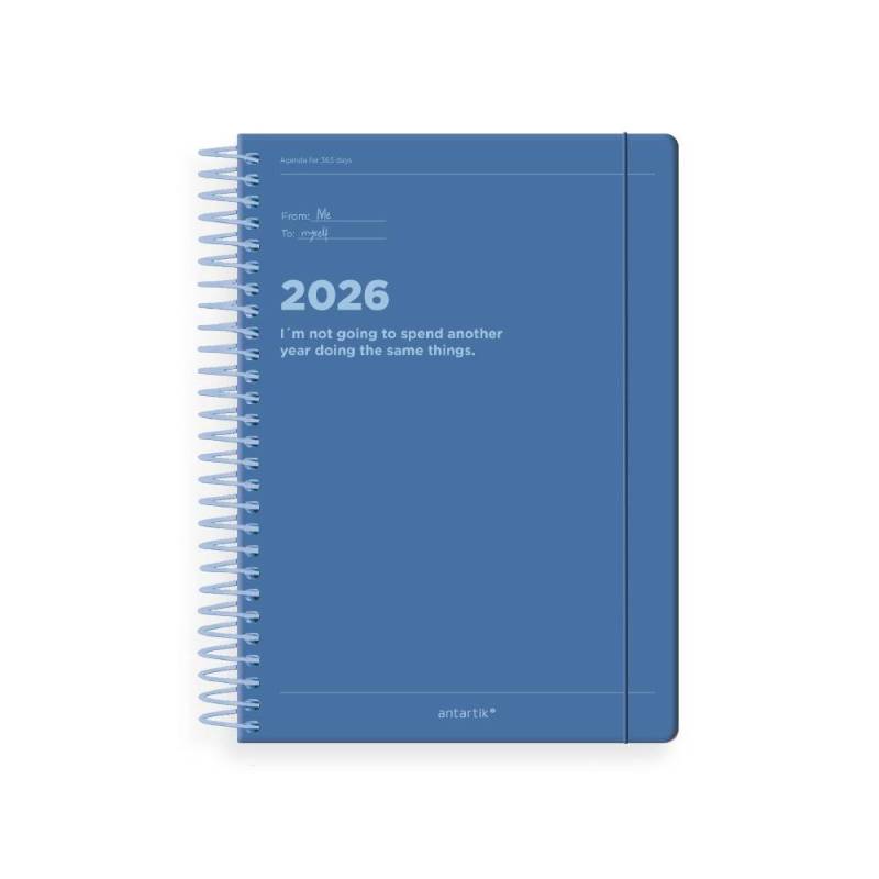AGENDA ESPIRAL MARCA ANTARTIK MANIFEST A5+ 2026 DÍA PÁGINA AZUL PAPEL 80G FSC