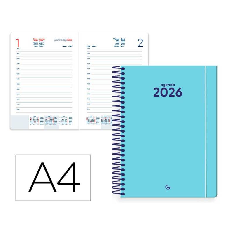 AGENDA ESPIRAL LIDERPAPEL CLASSIC A4 2026 DIA PAGINA AZUL CLARO PAPEL 70 GR FSC