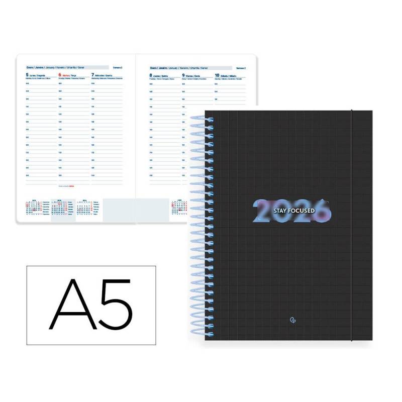 AGENDA ESPIRAL MARCA LIDERPAPEL KIMOLOS A6 2026 SEMANA VISTA FOCUS PAPEL 70 GR FSC
