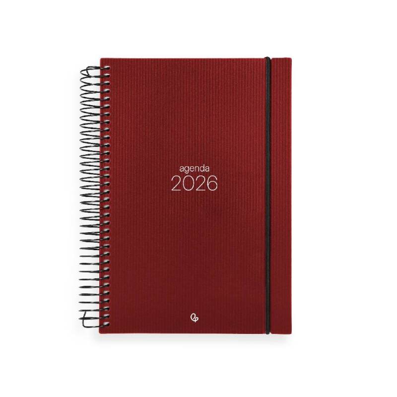 AGENDA ESPIRAL MARCA LIDERPAPEL OLBIA A5 2026 DIA PAGINA ROJO PAPEL 60 GR FSC