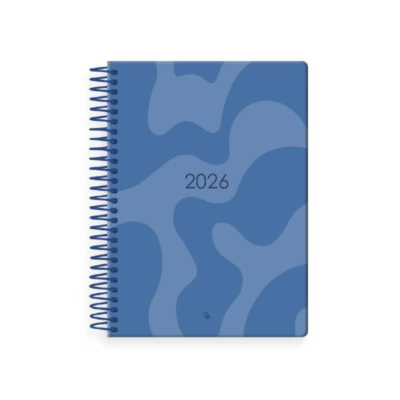 AGENDA ESPIRAL MARCA LIDERPAPEL SYROS 150X210 MM 2026 DIA PAGINA AZUL PAPEL 60 GR FSC