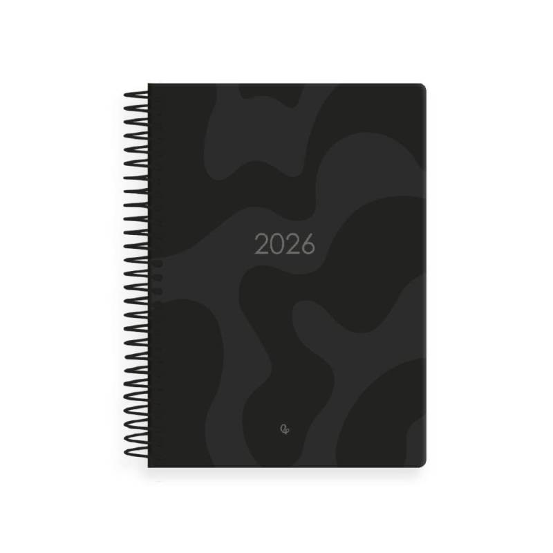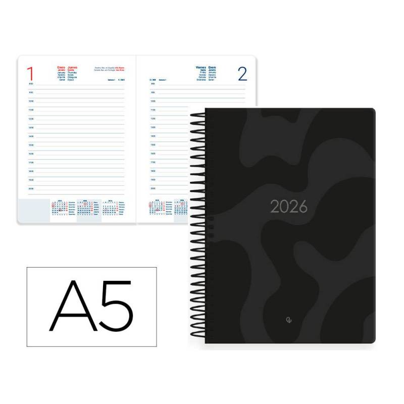 AGENDA ESPIRAL MARCA LIDERPAPEL SYROS 150X210 MM 2026 DIA PAGINA NEGRO PAPEL 60 GR FSC