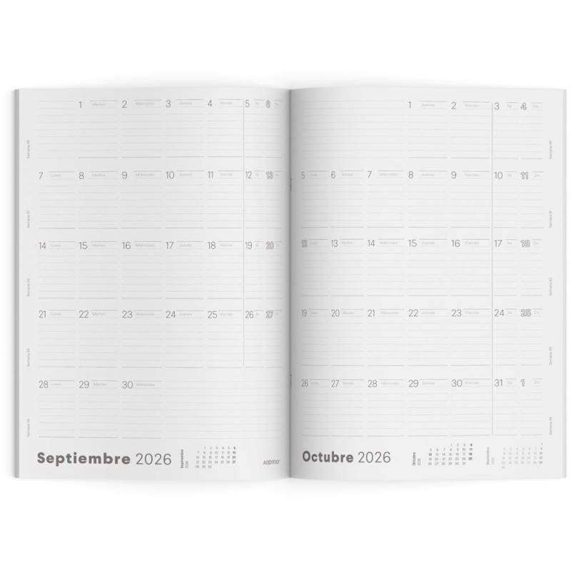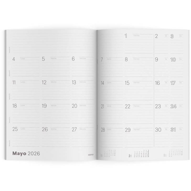 La Agenda G Mes Vista Additio es un planificador ideal para quienes buscan una organización prolongada y eficaz. Con un diseño de mes vista, este producto abarca 16 meses, desde septiembre hasta diciembre del año siguiente, permitiendo una planificación detallada y a largo plazo. Sus dimensiones de 19,5 x 28,5 cm proporcionan un amplio espacio para anotaciones, siendo a la vez fácil de transportar.