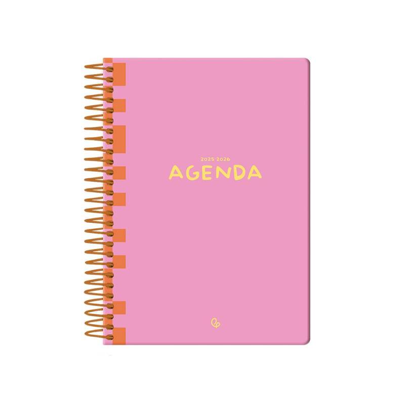 AGENDA ESCOLAR LIDERPAPEL 25-26 ESPIRAL CLASSIC ROSA SEMANA VISTA DIN A5 BILINGÜE PAPEL FSC 70 GR