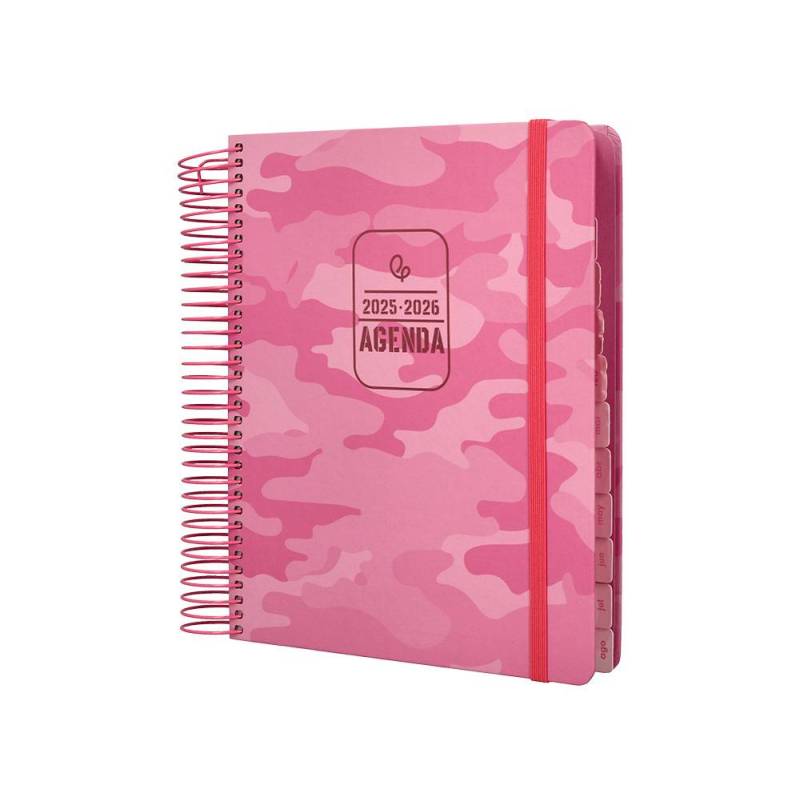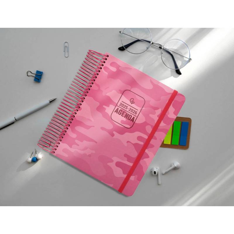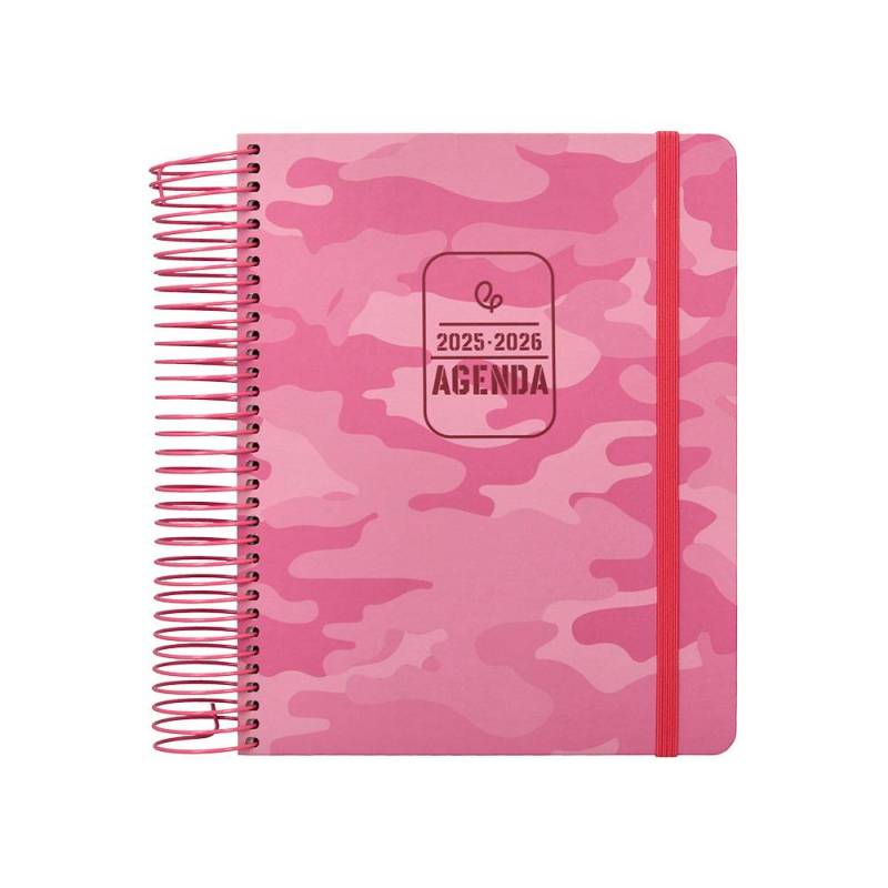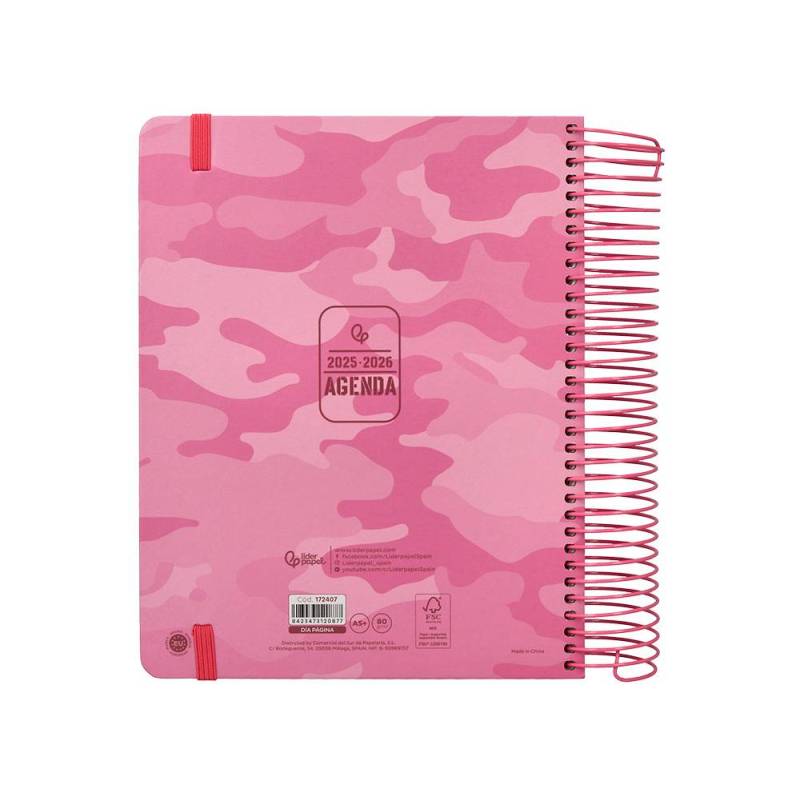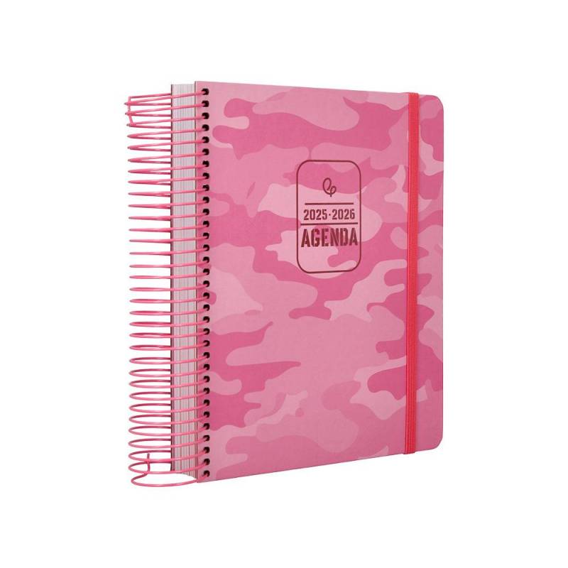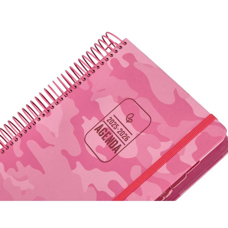 AGENDA ESCOLAR LIDERPAPEL 25-26 ESPIRAL PATTERNS MILITAR ROSA DIA PAGINA DIN A5 BILINGÜE PAPEL FSC 80 GR