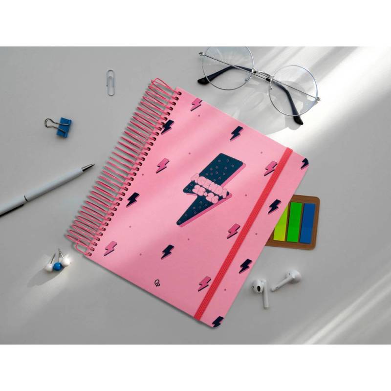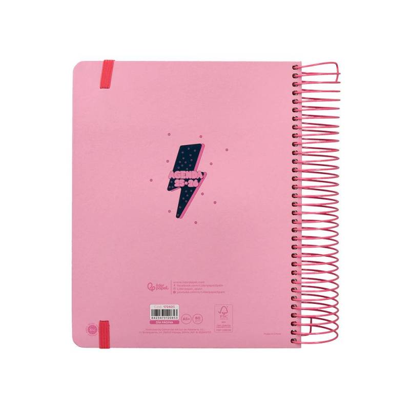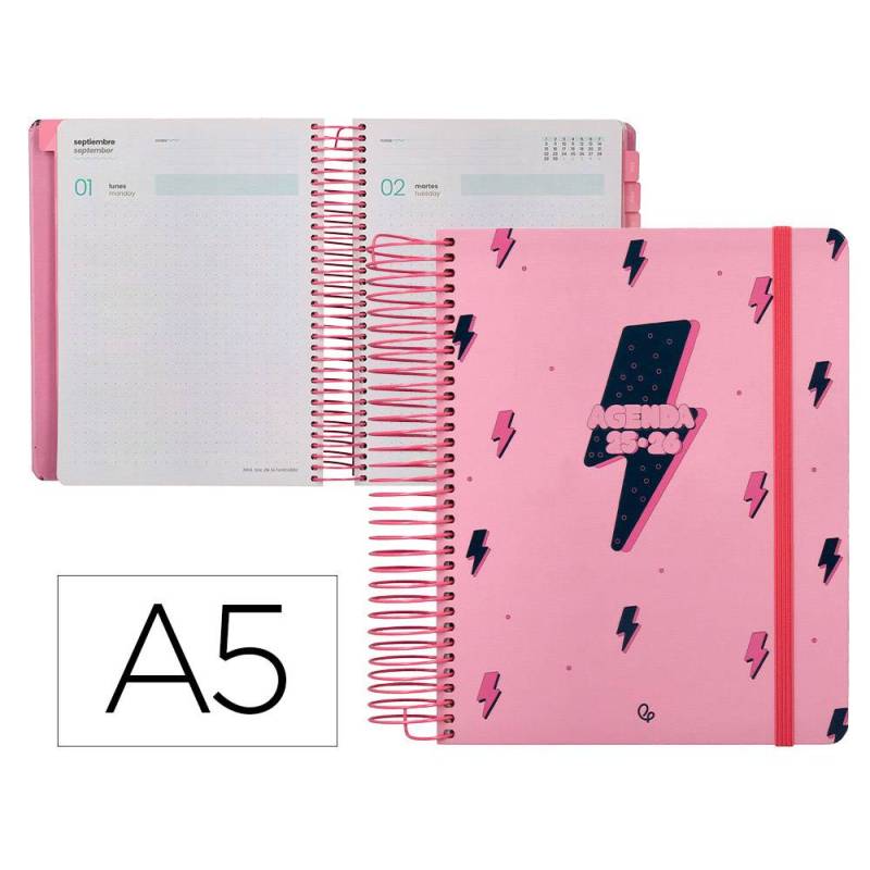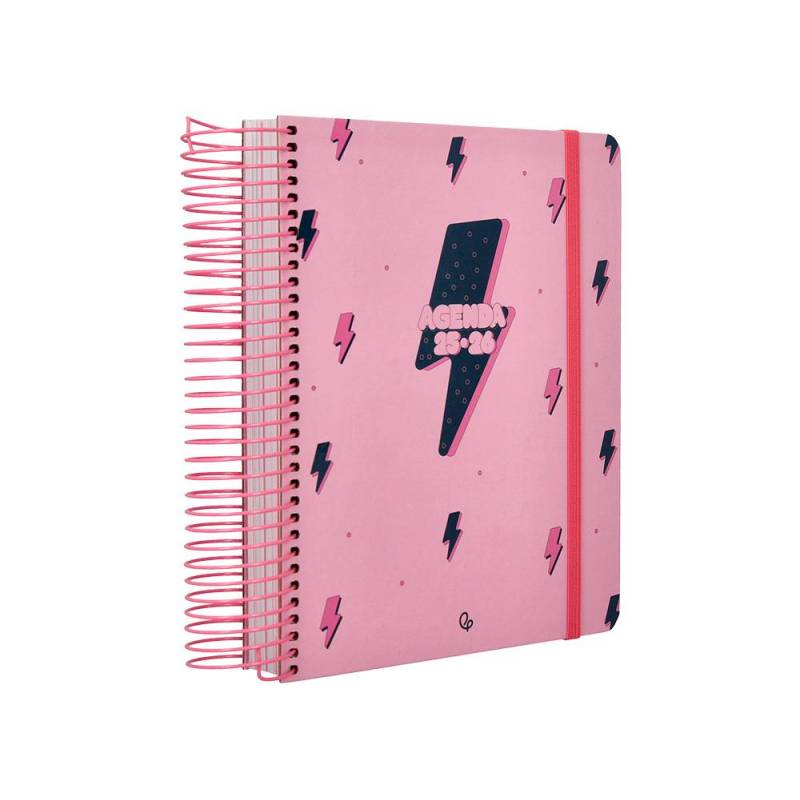 AGENDA ESCOLAR LIDERPAPEL 25-26 ESPIRAL PATTERNS RAYOS ROSA DIA PAGINA DIN A5 BILINGÜE PAPEL FSC 80 GR