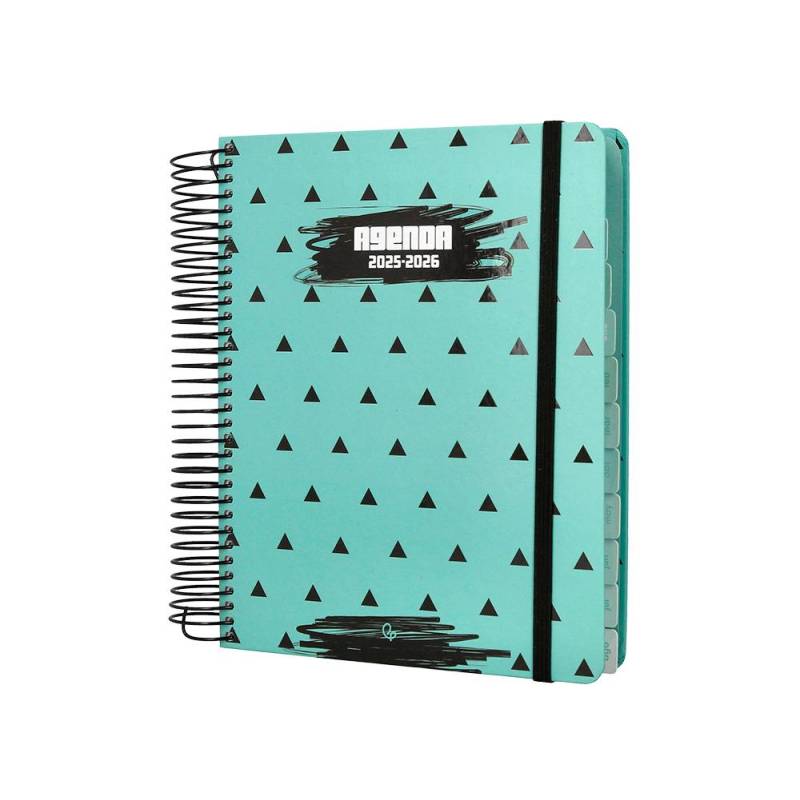 AGENDA ESCOLAR LIDERPAPEL 25-26 ESPIRAL PATTERNS TRIANGULOS DIA PAGINA DIN A5 BILINGÜE PAPEL FSC 80 GR