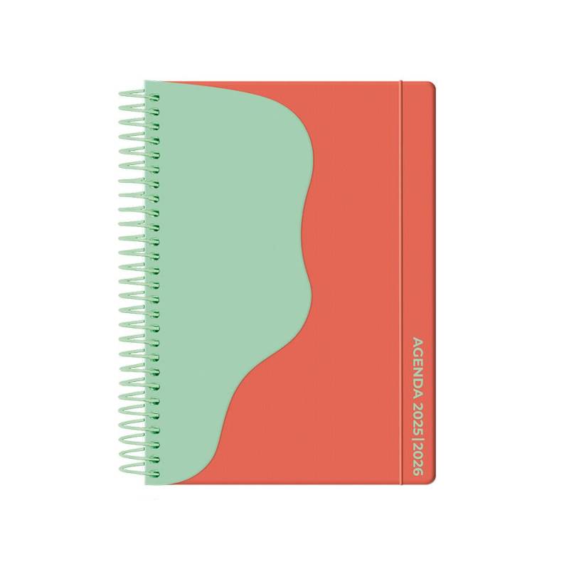 AGENDA ESCOLAR LIDERPAPEL 25-26 ESPIRAL WAVES ROJO SEMANA VISTA DIN A5 BILINGÜE PAPEL FSC 80 GR