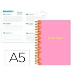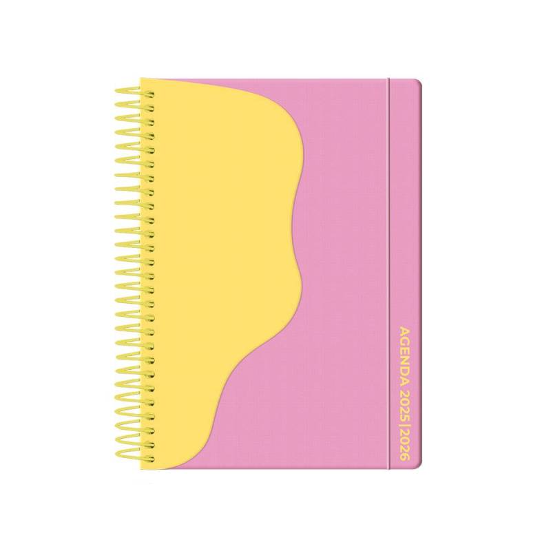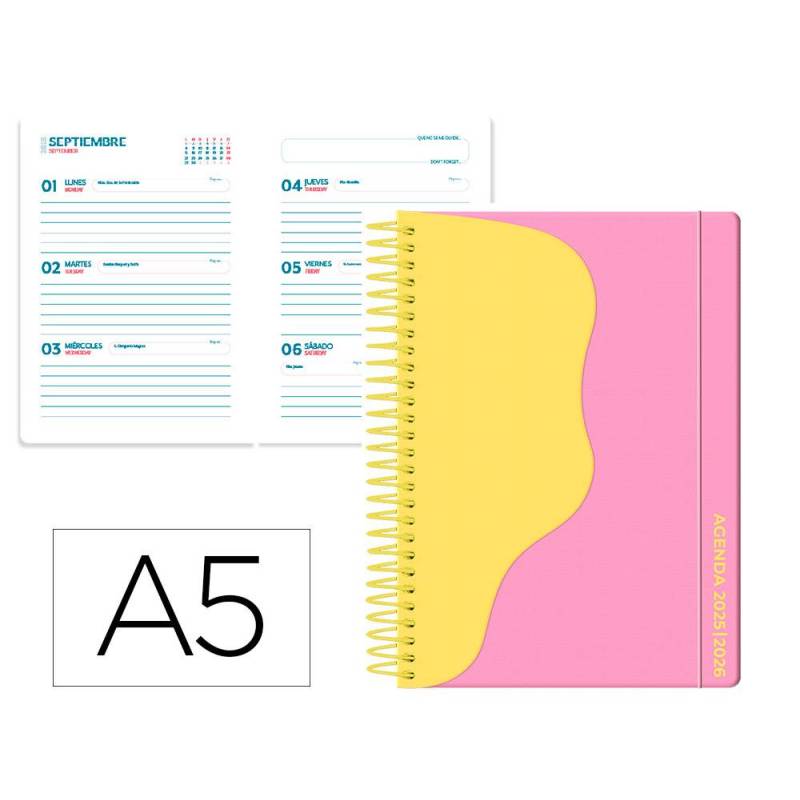 AGENDA ESCOLAR LIDERPAPEL 25-26 ESPIRAL WAVES ROSA SEMANA VISTA DIN A5 BILINGÜE PAPEL FSC 80 GR