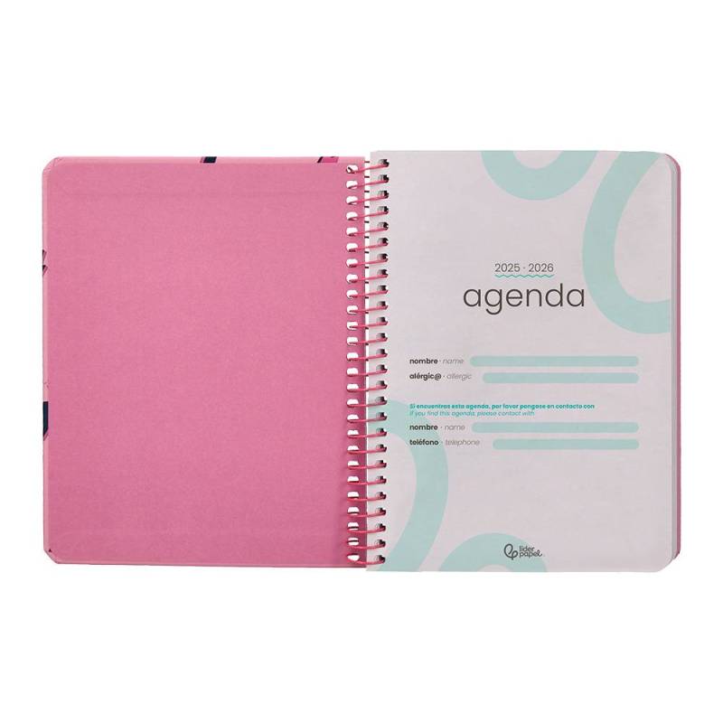 La Agenda Escolar 2025-2026 Liderpapel Teens Patterns Abstract Pattern es perfecta para aquellos que buscan combinar organización con un toque artístico. Con su diseño compacto en formato A6, esta agenda bilingüe ofrece una experiencia visualmente atractiva, ideal para estudiantes que desean planificar su curso académico con estilo. La encuadernación en espiral y la banda a juego no solo mejoran la apariencia, sino que también facilitan la manipulación de las páginas, permitiéndote escribir cómodamente.