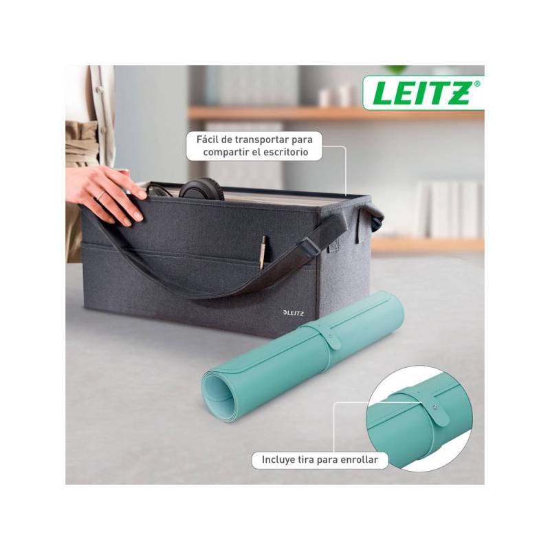 La alfombrilla de sobremesa Leitz de 80x40 cm en color verde menta es un complemento ideal para mantener tu espacio de trabajo ordenado, protegido y con un estilo moderno. Su gran superficie permite ubicar cómodamente el teclado, ratón y otros accesorios, mientras que su diseño minimalista y funcionalidad la convierten en un elemento práctico tanto para el trabajo como para el ocio.