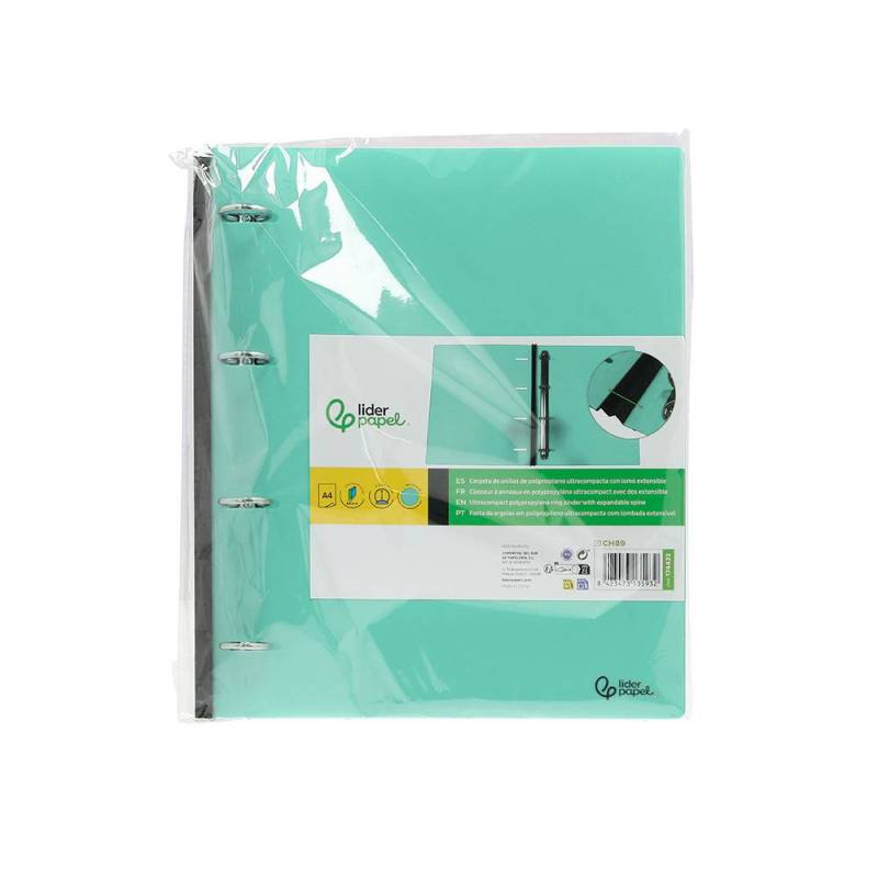 Esta carpeta de 4 anillas redondas de 25 mm en formato DIN A4 combina funcionalidad y diseño práctico para la organización eficiente de documentos. Fabricada en polipropileno de 700 micras, ofrece una resistencia notable frente al desgaste y la humedad. Su diseño ultra compacto y el lomo extensible de hasta 4 cm permiten adaptarse a distintos volúmenes de contenido, optimizando su capacidad sin perder comodidad para el transporte y almacenamiento.