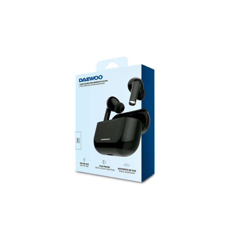 AURICULAR MARCA DAEWOO TWS BLUETOOTH 5.3 USB TIPO-C CON ESTUCHE DE CARGA 500MAH COLOR NEGRO