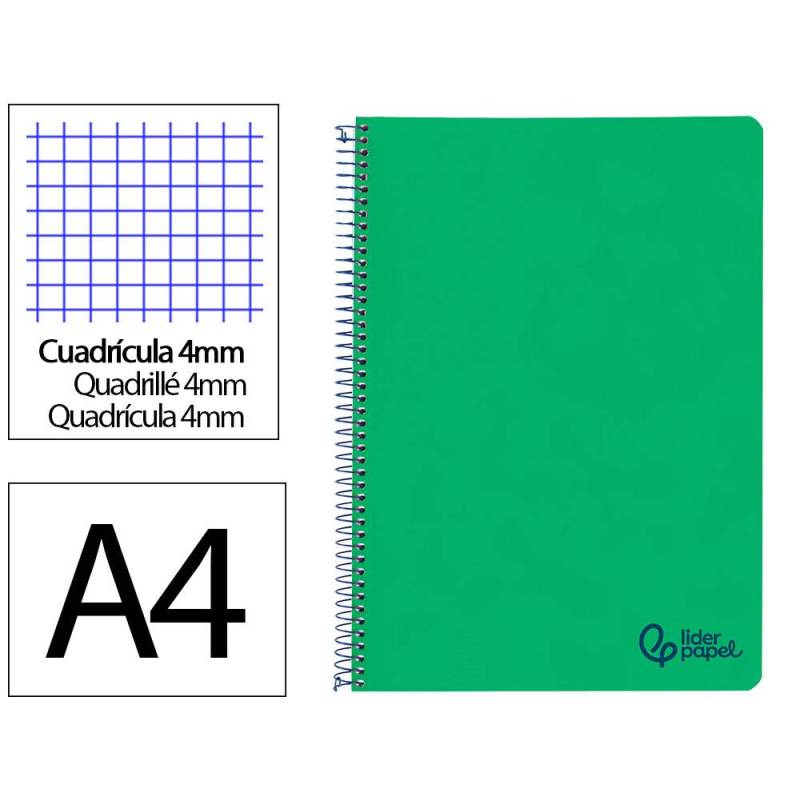 CUADERNO ESPIRAL MARCA LIDERPAPEL A4 WONDER TAPA PLASTICO 80H 90GR CUADRO 4MM CON MARGEN COLOR VERDE OSCURO