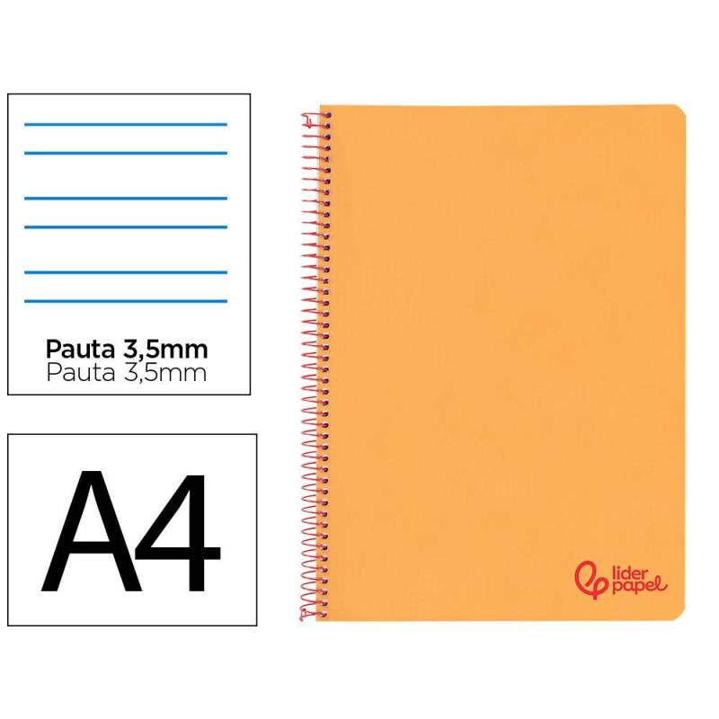 CUADERNO ESPIRAL LIDERPAPEL DIN A4 WONDER TAPA PLASTICO 80H 90GR PAUTA ANCHA 3,5MM CON MARGEN COLOR NARANJA