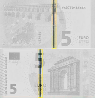 • Impresión en relieve en el reverso del billete