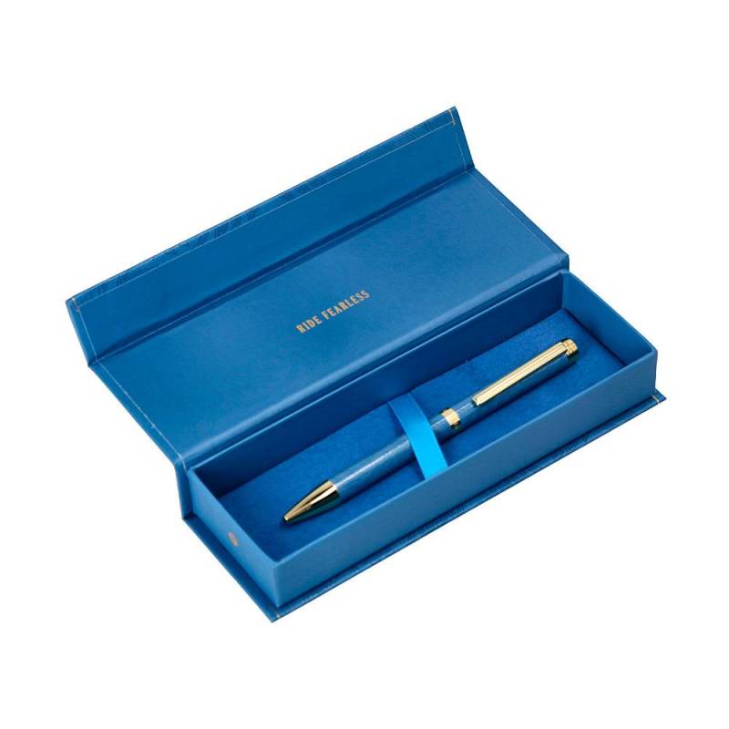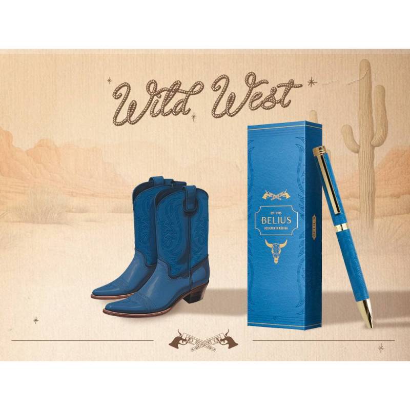 BOLIGRAFO BELIUS WILD WEST ALUMINIO AZUL MARINO DORADO TINTA COLOR AZUL CAJA DE DISEÑO