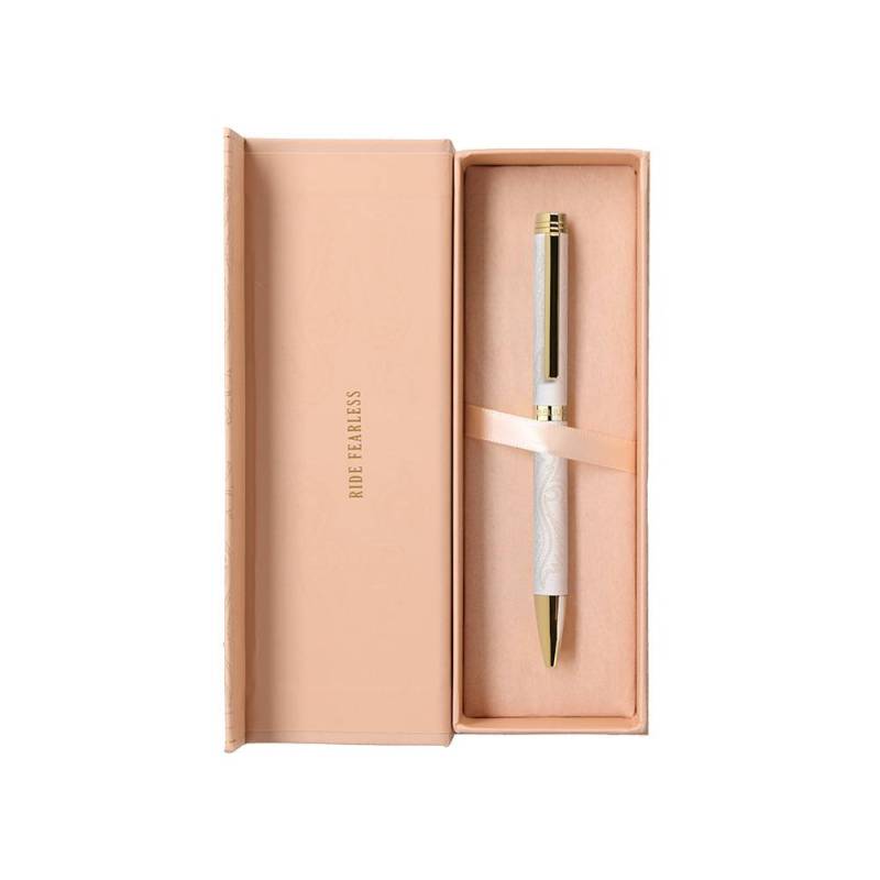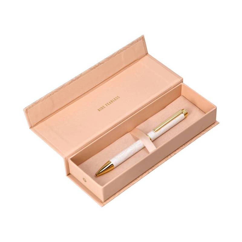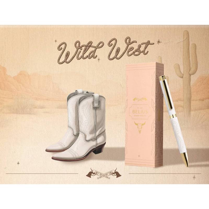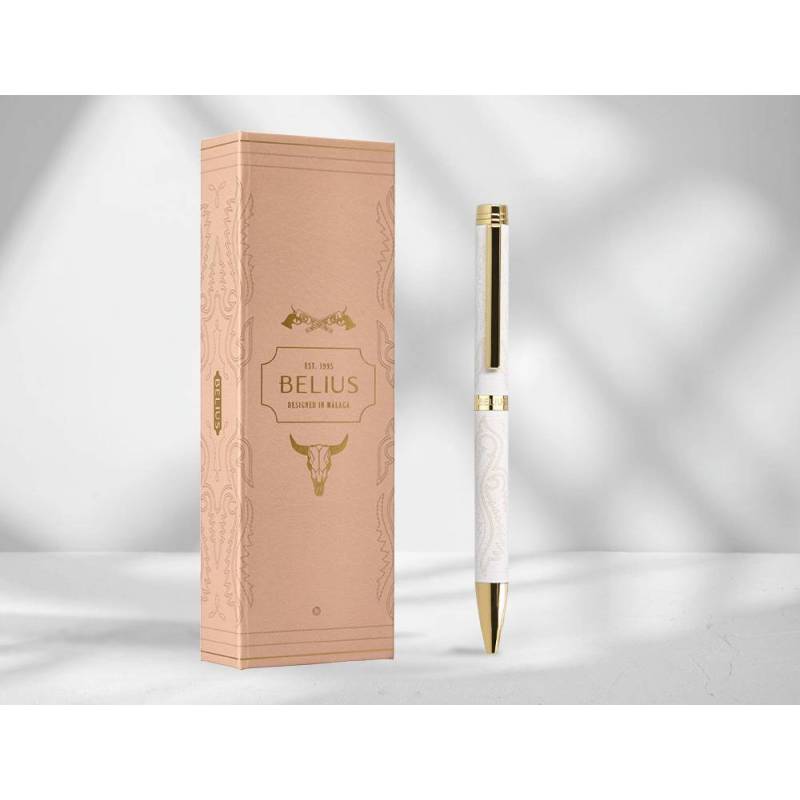 BOLIGRAFO MARCA BELIUS WILD WEST ALUMINIO COLOR CREMA DORADO TINTA COLOR AZUL CAJA DE DISEÑO