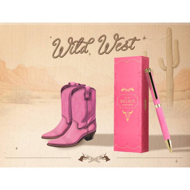 BOLIGRAFO BELIUS WILD WEST ALUMINIO ROSA DORADO TINTA COLOR AZUL CAJA DE DISEÑO
