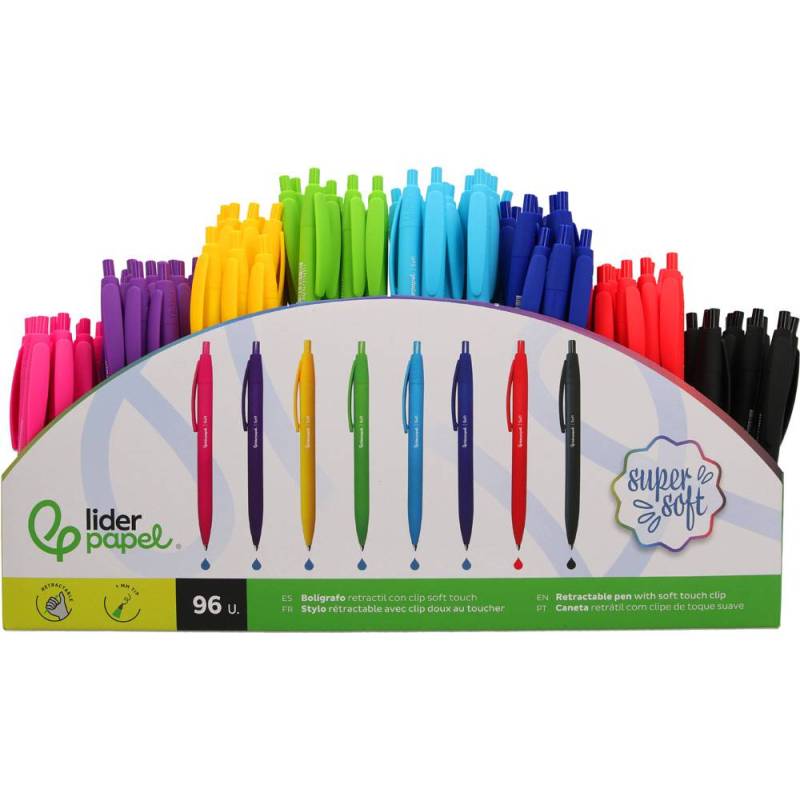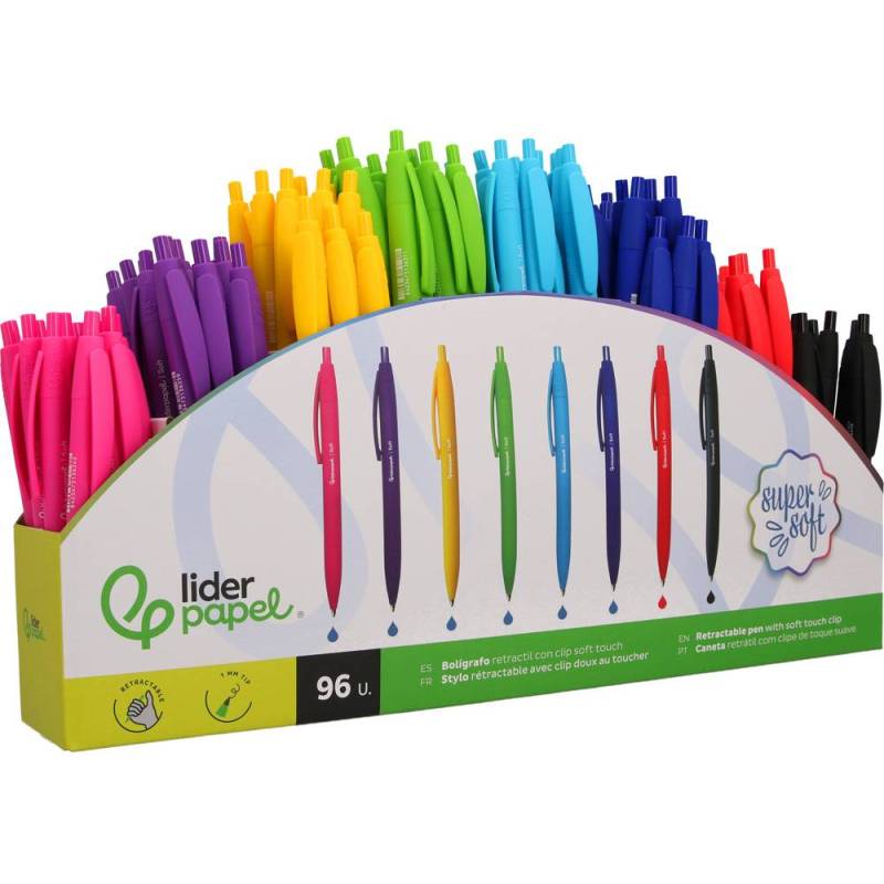 Este bolígrafo retráctil de Liderpapel combina funcionalidad y comodidad para ofrecer una experiencia de escritura precisa y fluida. Su diseño ergonómico con acabado Soft Touch garantiza un agarre antideslizante, mientras que la punta de 1 mm permite realizar trazos limpios y definidos. Ideal tanto para uso profesional como escolar, se presenta en un expositor con 96 unidades en colores surtidos, facilitando la organización y diferenciación de notas o documentos.