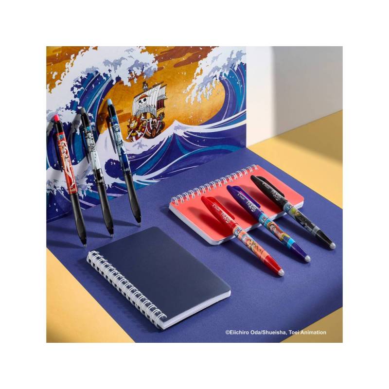 Experimenta la escritura sin errores con el bolígrafo Pilot Frixion Borrable One Piece Edición Limitada, una colección única que une la funcionalidad y el diseño temático inspirado en el famoso manga y anime One Piece. Este set especial no solo es una herramienta de escritura eficaz, sino también un objeto de colección para los fanáticos de la serie.