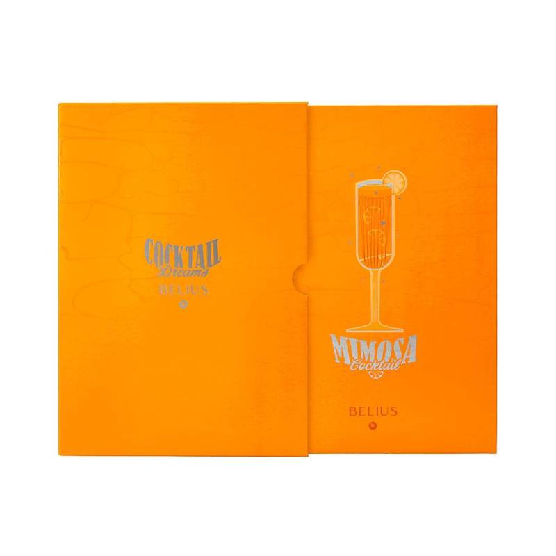 BOLIGRAFO Y WALLET BELIUS COCKTAILS MIMOSA ALUMINIO NARANJA PLATEADO RELIEVE TINTACOLOR AZUL CAJA DE DISEÑO