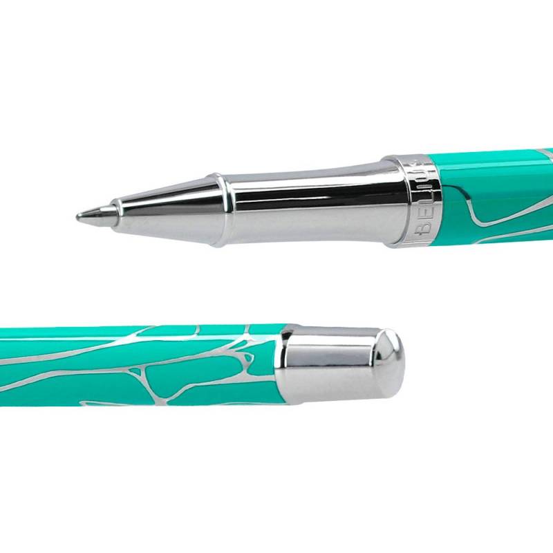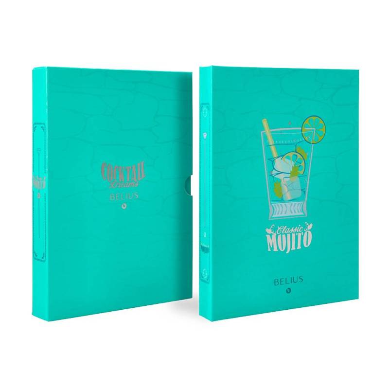 BOLIGRAFO Y WALLET MARCA BELIUS COCKTAILS MOJITO ALUMINIO VERDE PLATEADO RELIEVE TINTA COLOR AZUL CAJA DE DISEÑO