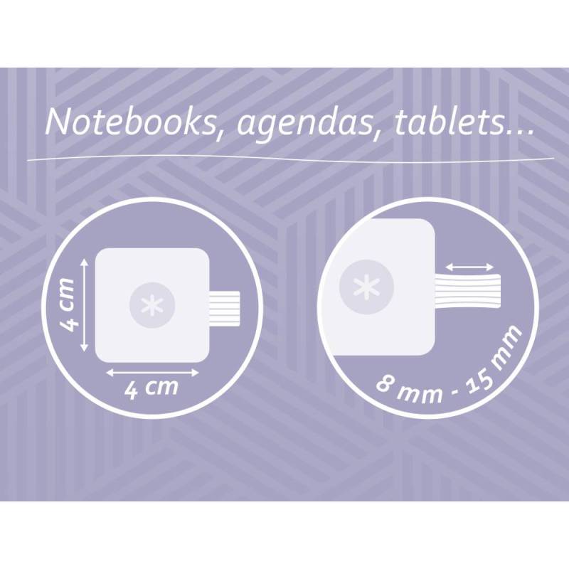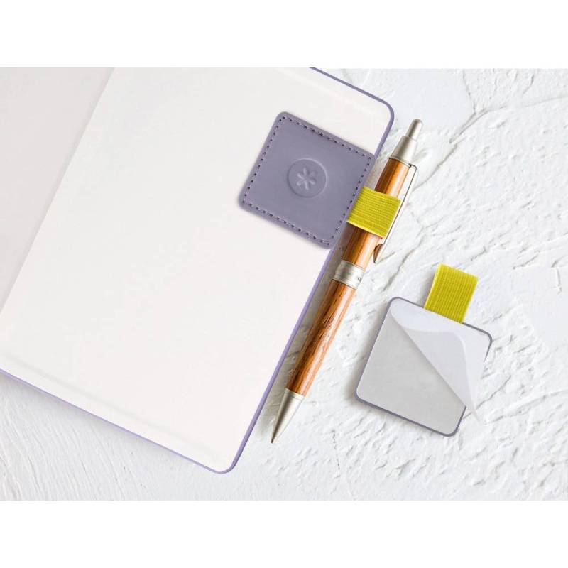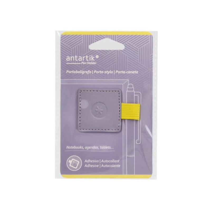 PORTABOLIGRAFO AUTOADHESIVO MARCA ANTARTIK PARA CUADERNO NOTE CON ELASTICO HASTA 15 MM GROSOR 80 MM MORADO Y AMARILLO