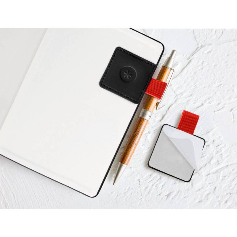 PORTABOLIGRAFO AUTOADHESIVO MARCA ANTARTIK PARA CUADERNO NOTE CON ELASTICO HASTA 15 MM GROSOR 80 MM NEGRO Y ROJO