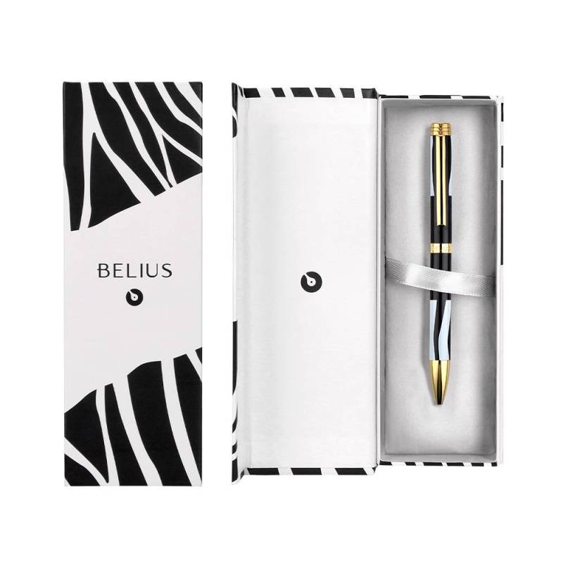 Boligrafo belius dualita cuerpo negro color blanco tinta azul caja de diseño. |