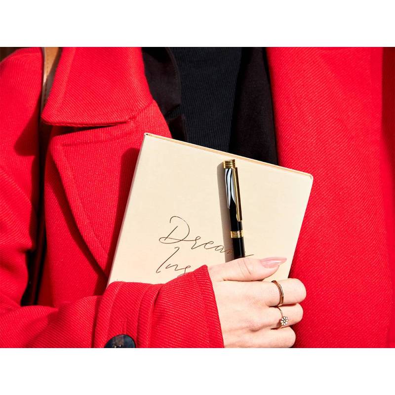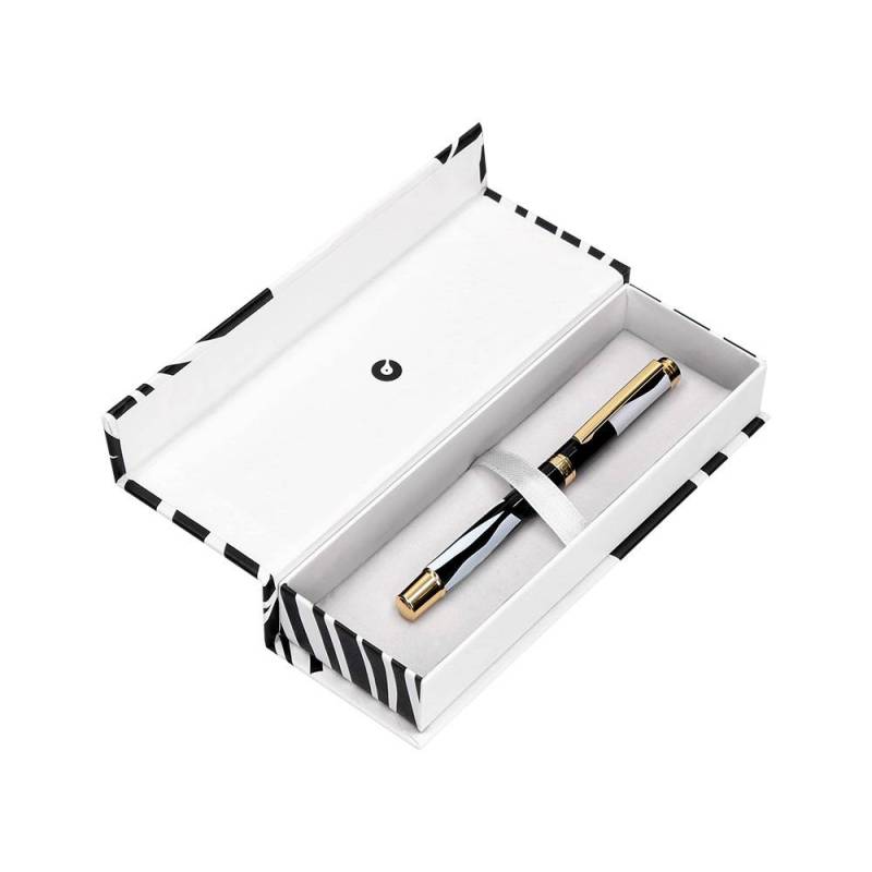El roller dualità combina un diseño moderno y atrevido, con un cuerpo en color negro decorado con trazos estilo cebra en blanco y detalles metálicos dorados. Viene presentado en una moderna caja de cierre magnético que juega con la inversión de colores, incorporando una solapa interior en contraste. El diseño en blanco y negro invertidos representa el contraste y la dualidad presentes en la juventud, capturando su energía. La colección se caracteriza por su diseño elegante, contemporáneo con un estilo único. Cada detalle ha sido cuidadosamente elegido para crear un impacto visual fuerte y llamativo. Tinta color negro. Grosor tamaño 0,7 mm. Más modelos disponibles |