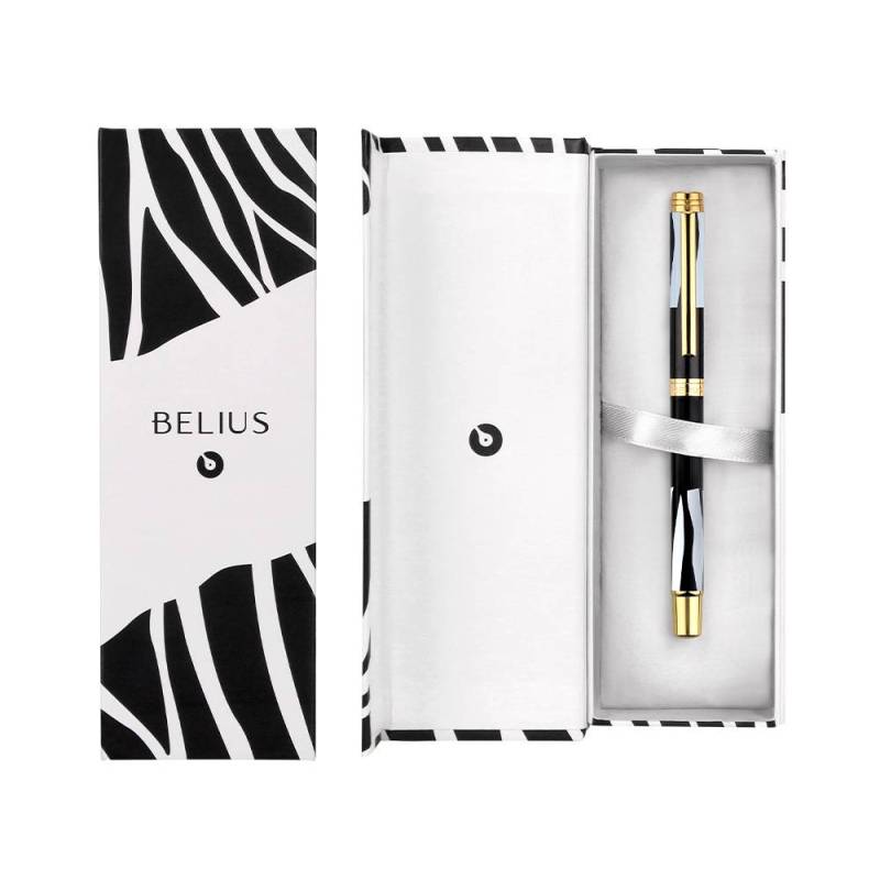 Roller belius dualita cuerpo blanco color negro tinta negra caja de diseño. |