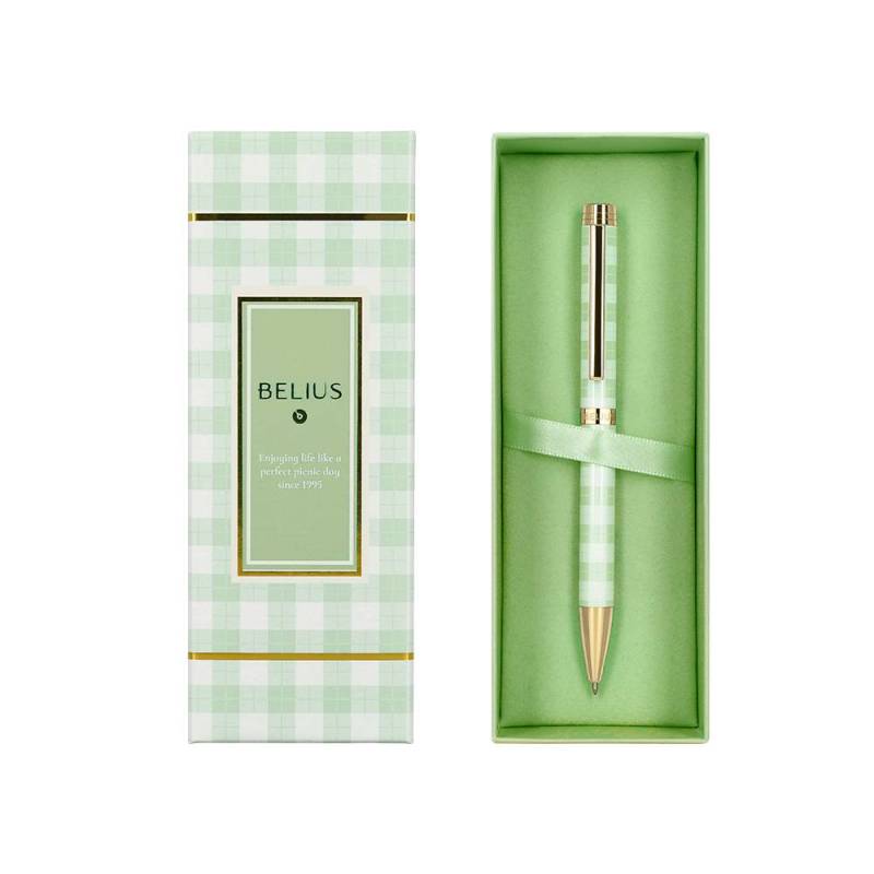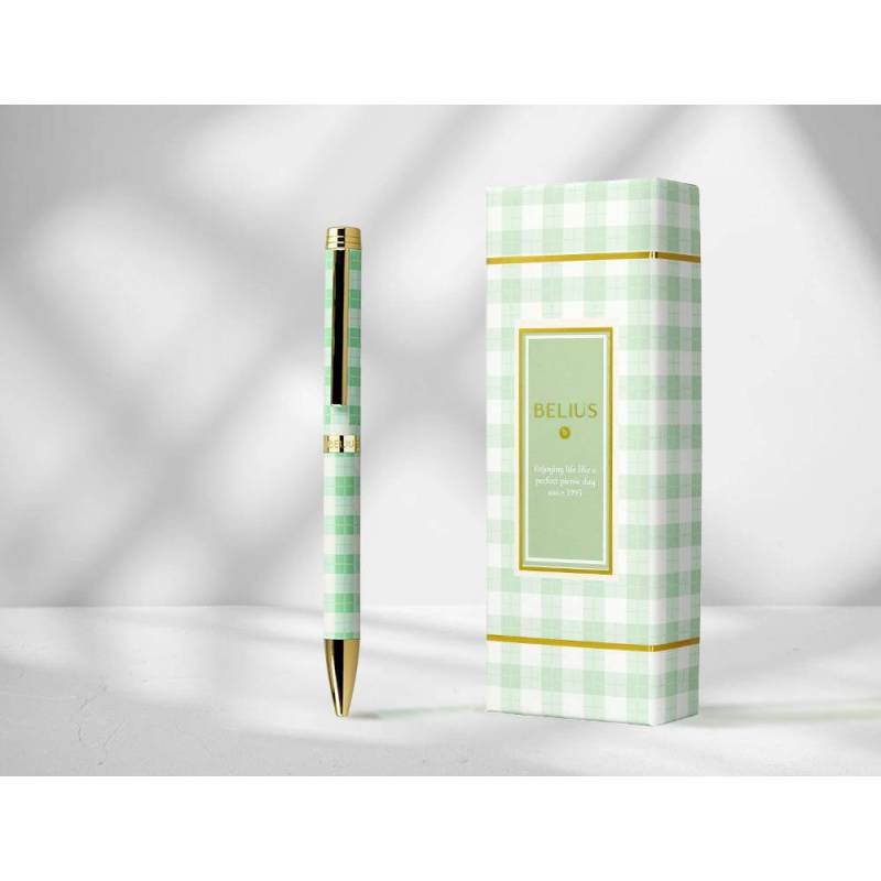 El Roller Belius Picnic es una exquisita pieza de escritura que encapsula la esencia de un día perfecto al aire libre con su diseño inspirado en el clásico estampado Vichy. Esta colección evoca la frescura y la elegancia de un picnic acompañado de buen gusto y belleza atemporal. Con un cuerpo de aluminio en un distinguido color verde dorado, este bolígrafo no solo ofrece una experiencia de escritura suave y refinada, sino que también es un deleite visual.