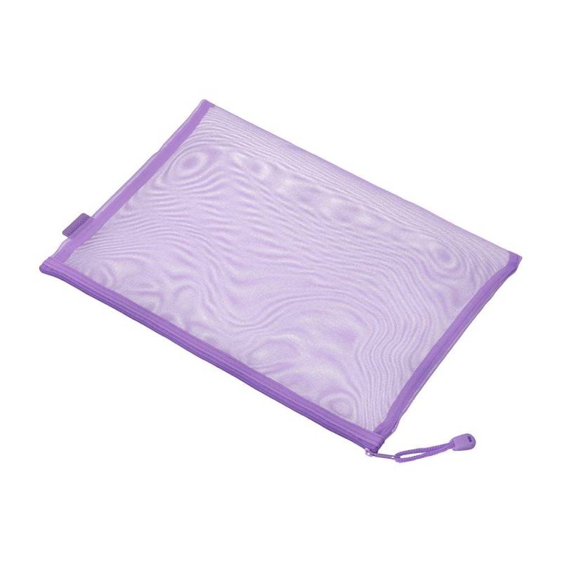 Esta bolsa zipper bag de Liderpapel está fabricada en poliéster transpirable de alta calidad, combinando resistencia y ligereza para facilitar su transporte y uso diario. Su diseño en rejilla permite visualizar el contenido rápidamente, mientras que el cierre de cremallera garantiza una protección segura para documentos y objetos pequeños. Con un tamaño adaptado para hojas DIN A4 y un elegante color morado pastel, es una solución práctica y estética para mantener organizados y protegidos tus materiales tanto en casa como en la oficina o de viaje.