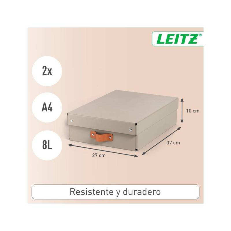 CAJA DE ALMACENAJE LEITZ CARTON MEDIANA BAJA CON ASA DE PIEL COLOR BEIGE PACK DE 2 UNIDADES