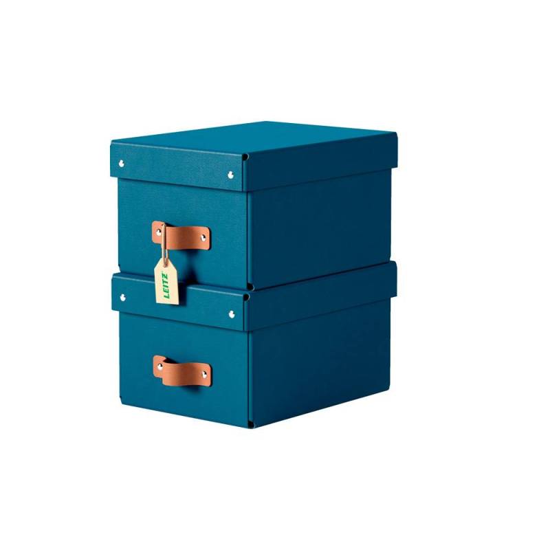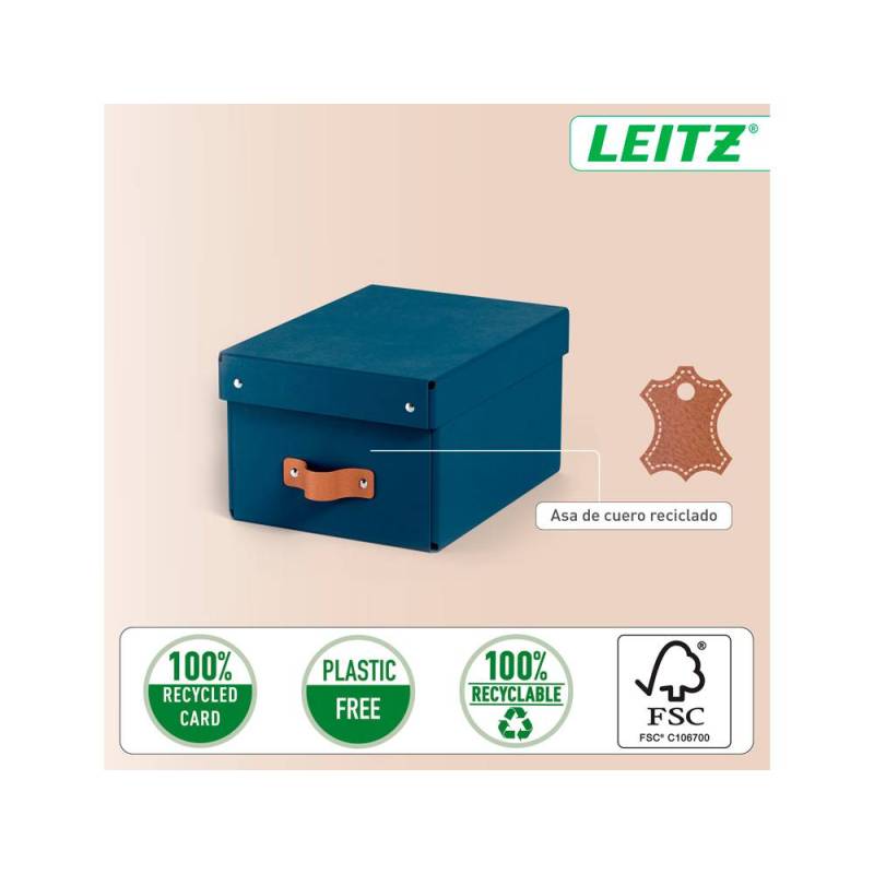 CAJA DE ALMACENAJE LEITZ CARTON PEQUEÑA CON ASA DE PIEL AZUL PACK DE 2 UNIDADES