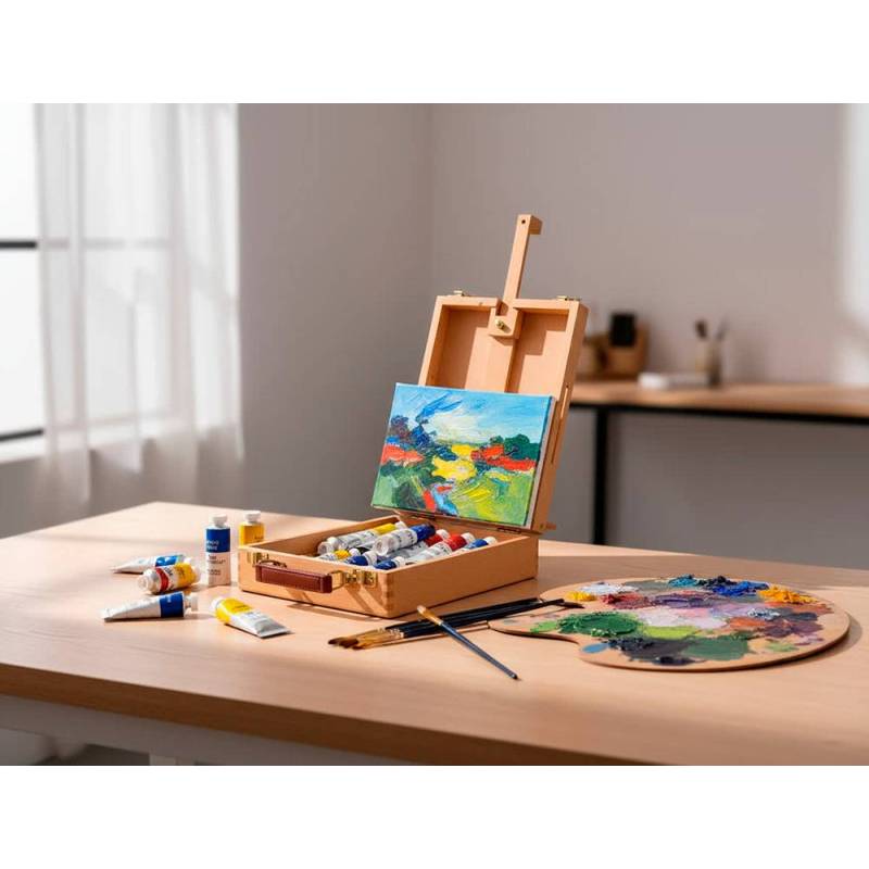 Este caballete de sobremesa es una solución compacta y funcional diseñada para artistas que buscan una herramienta estable y portátil para sus proyectos de pintura. Fabricado en madera de haya barnizada, combina durabilidad con un acabado profesional, ofreciendo un soporte adecuado para técnicas como óleo y acrílico. Su tamaño compacto facilita su uso en mesas o escritorios, mientras que el maletín incorporado permite un transporte y almacenamiento ordenado de todo el material.