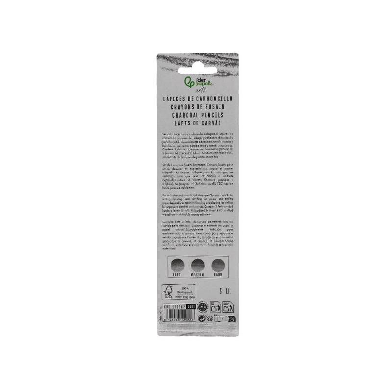 Mejora la calidad y detalle de tus dibujos con este set de 3 lápices de carboncillo para esbozos de Liderpapel, diseñados para ofrecer diferentes niveles de dureza. Ideales para bocetos, sombreados y trazos profundos, estos lápices proporcionan una experiencia artística precisa y versátil. Además, cuentan con la certificación FSC, que asegura la procedencia sostenible y responsable de la madera utilizada en su fabricación.